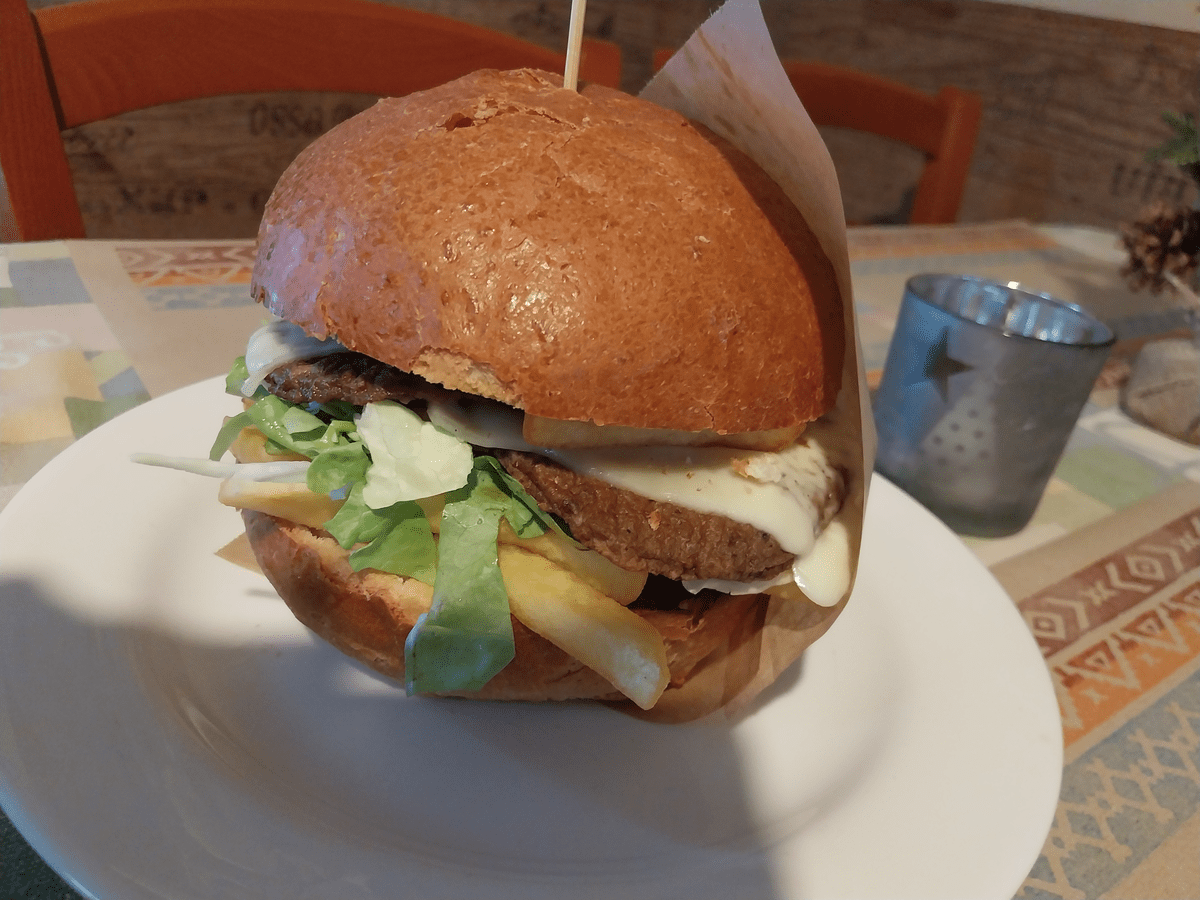 Nagy hambi zsemle, sajtszósz,salimix.hasáb burgonya,gyros hús, hambi hús 2 db, sajt,csalamádé,ketchup,mustár